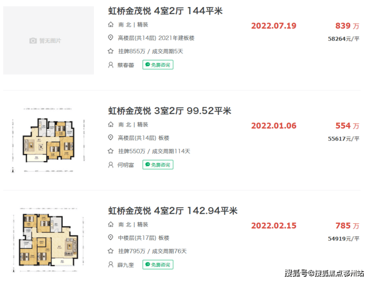 周边次新房虹桥金茂悦已有成交数据,二手房成交价高达5.8万/平,挂牌价也已超5.5万/平。