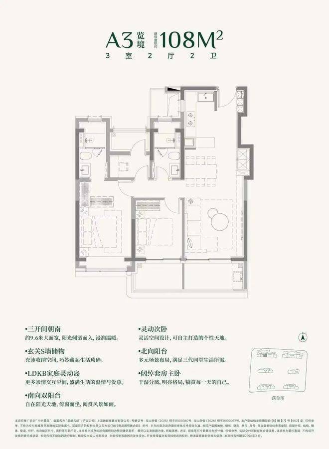 建面约108㎡3房的三阳台面积就高达约13㎡。(阳台仅附赠一半面积)