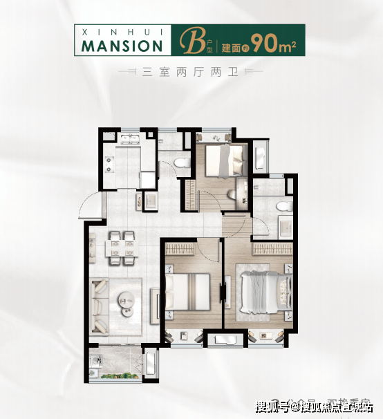 ②94平 (三室两厅两卫) 全南户型,南北通透