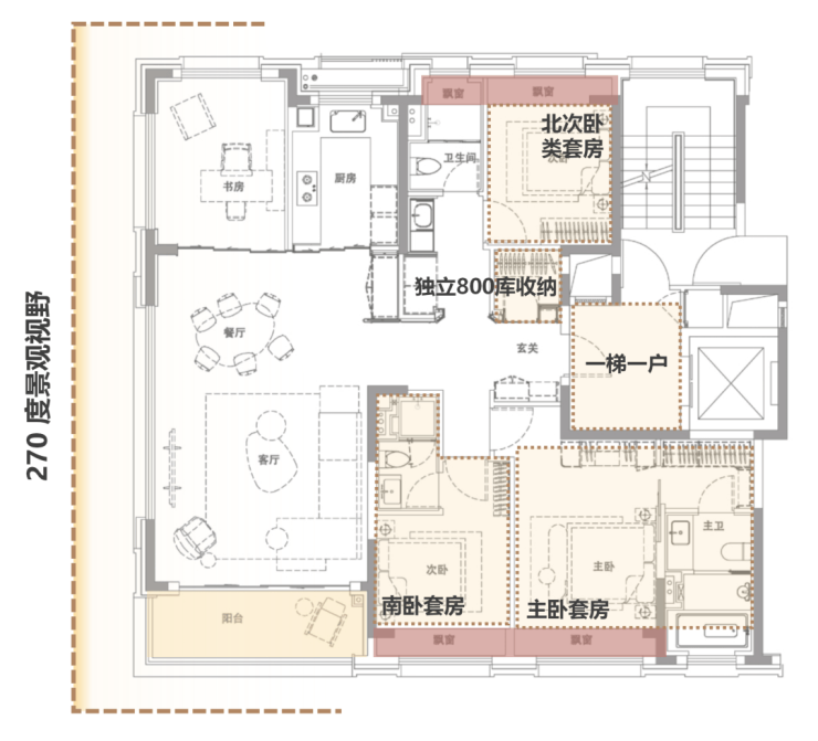 首先,同样一梯一户的体验,就已经比目前市场上绝大多数刚需三房产品高上一截。