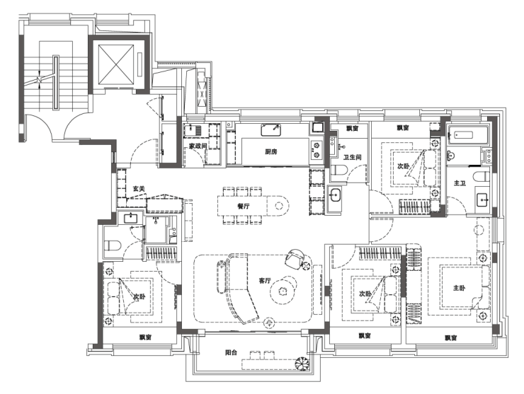 南次卧同样为套房设计,满飘窗扩展视觉体验;