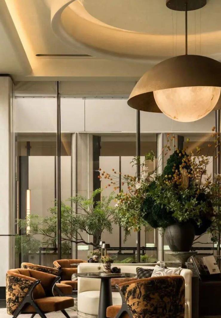 一汪深邃的「宇宙之心」漩涡水景,灵感源自梵蒂冈博物馆举世闻名的双螺旋楼梯,模仿宇宙星系流转的宏大景象,纳藏天地万物生生不息的力量。