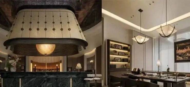来到致敬金贝尔美术馆打造的「天穹光廊」,地面由蓝翡翠+汉白玉+温德姆灰3种奢石精细切割拼花而成,长廊尽头景墙精选龙纹绿奢石,中轴对称的庄严格局,仿佛漫步博物馆。