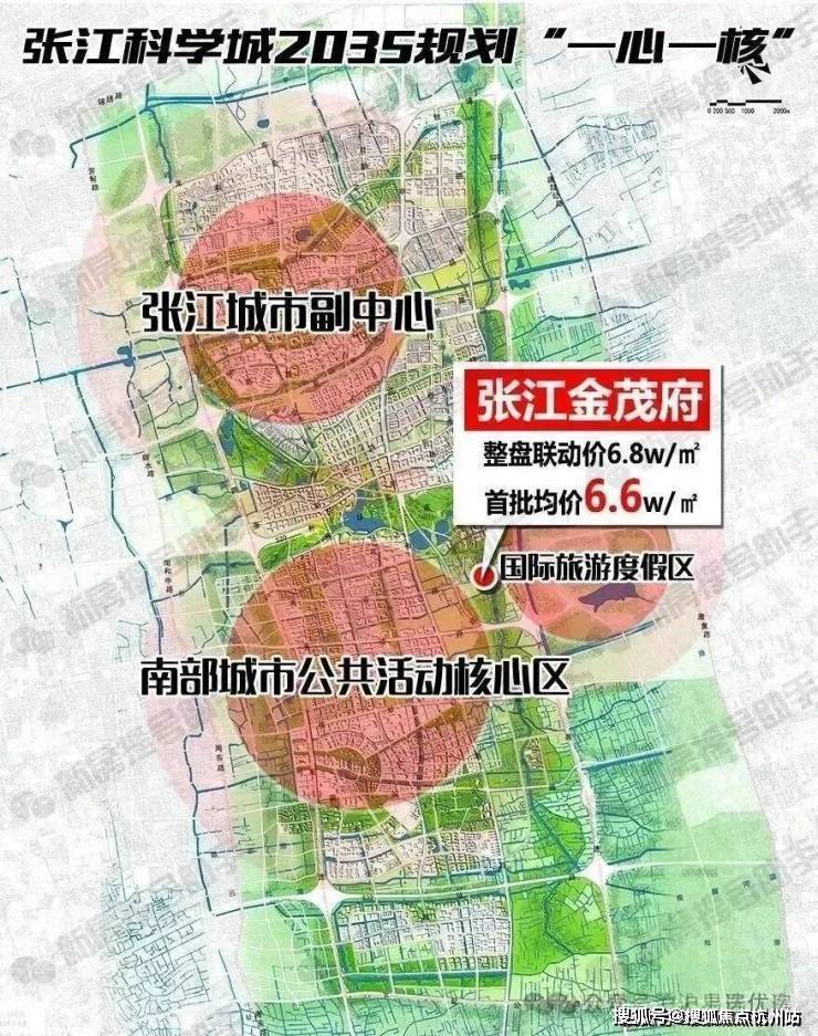 「张江金茂府」则是2017年张江科学城95平方公里规划范围内 (信息来源于张江科学城官网) 仅有的新房项目,整盘联动价6.8w/㎡,首批均价仅约6.6w/㎡,难得的真正张江科学城的置业机会!