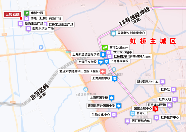 上实云端位于华新板块核心,与虹桥前湾地区核心直线距离不过2公里,与虹桥核心区直线距离不过8公里,可谓是近水楼台先得月。
