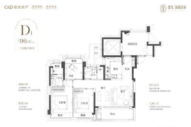 建面约96㎡ 3房2厅2卫
