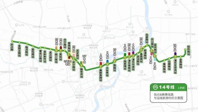 懂上海轨交的人都知道,2021年开通的14号线,是上海最后一条穿越市中心的烫金大动脉。整条线路串起了真如、静安寺、新天地、豫园、陆家嘴9个顶级CBD,是真正的城市黄金轴线。