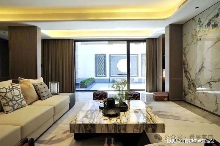 项目采用院厅融合设计,将下沉式院落焕新为地上庭院,扩大院子面积,为客厅的延伸与衔接留下更多想象空间。