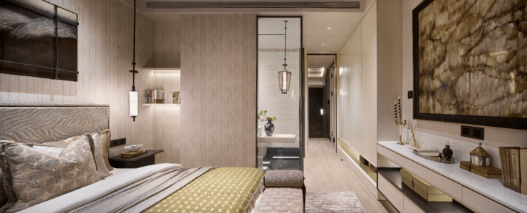 全套房格局:二层、三层为家庭居住区,每个房间都宽敞舒适。二层每间套房均超4m大尺度开间。三层的整层主卧套房奢华酒店式设计,步入式衣帽间与独立卫浴极尽奢华,更外接星空露台,观景小酌极尽惬意。