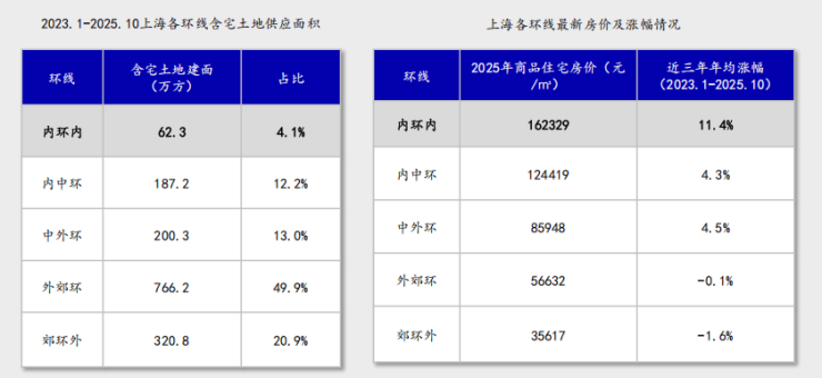 内环地段与高度聚集的资源支撑下,市中心房价日新月异。内环金陵华庭,2025年一批次均价18.9万/㎡,半年后二批次加推,价格涨到20.5万/㎡,三期20.6万/㎡,依然高层圆满收官。据数据统计,近三年上海内环内新房年均涨幅达11.4%,远超其他环线,其抗波动性与增值潜力毋庸置疑。
