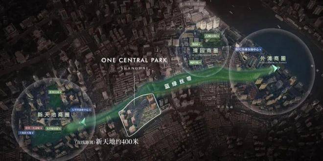 距离新天地直线距离约400米,作为蓝绿丝带规划上的关键节点,随着大新天地东进南拓战略逐步实施,通过水景、绿地和公共空间,串联新天地、豫园、外滩三大世界级商业版图。