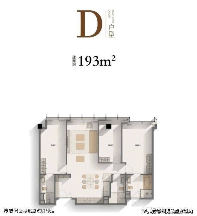 193㎡户型:三房两厅三卫,北向或南西双朝向,空间通透