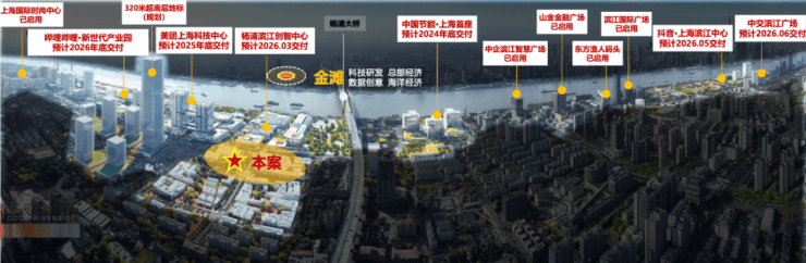 地理上看,中铁杨浦滨江项目直距黄浦江岸约500米,周边是星空华文、美团上海科技中心、B站总部、超级合生汇等头部项目.