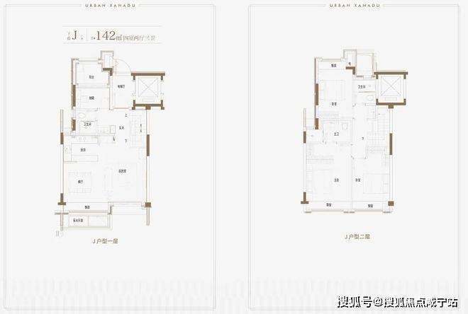 建面约139上叠户型,三层是会客区,四层是居住区,阳台+露台+多个飘窗设计,附加空间非常大,在别墅类产品中实属罕见!