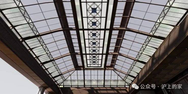 走进落客区,头顶美轮美奂的约300㎡彩色玻璃穹顶,灵感来自于和平饭店,融入老洋房PRADA荣宅的特殊徽章转译。其中水波纹玻璃、镶嵌玻利维亚蓝奢石带来了丰富的层次感,光影相间的繁复感,仿佛让人步入时光长廊,这样充满艺术性的归家礼仪,让人一眼着迷!