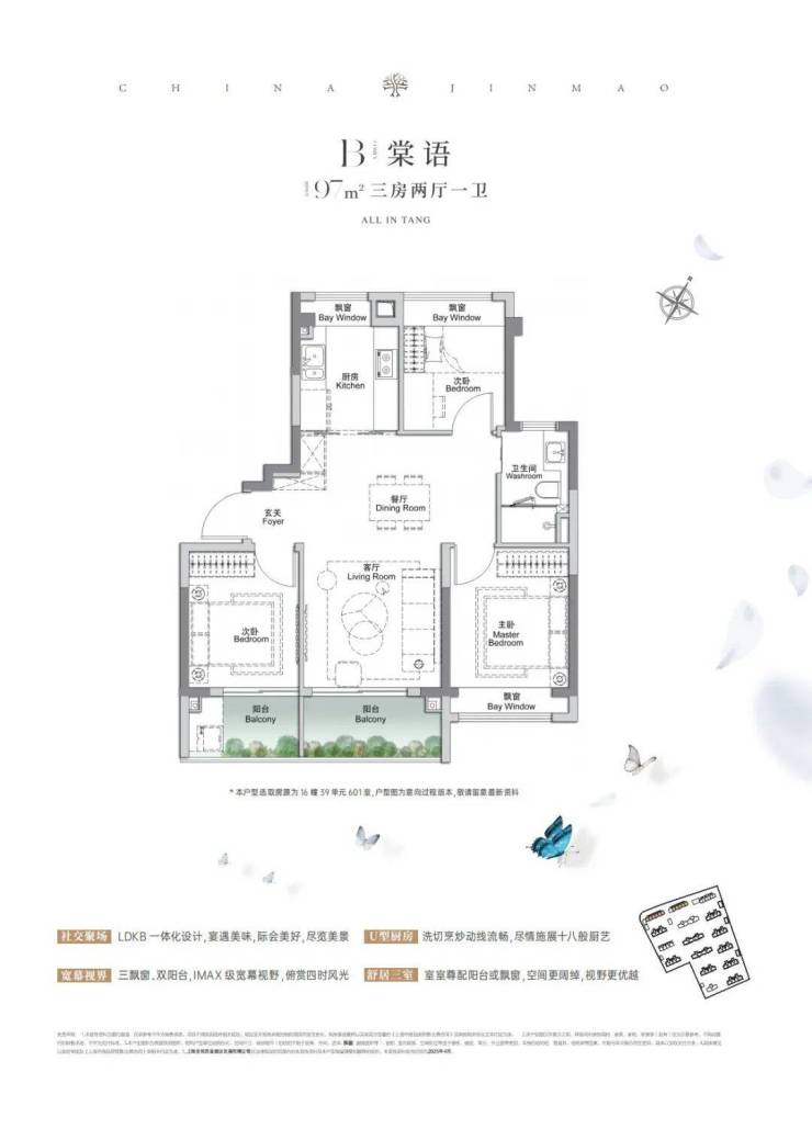 ✅✅金茂棠前售楼处电话:400 - 1010 - 064✅✅建面约97㎡三房:三开间朝南+3飘窗+双面阳台系统,采光、通风、视野俱佳,满足二胎家庭成长需求;