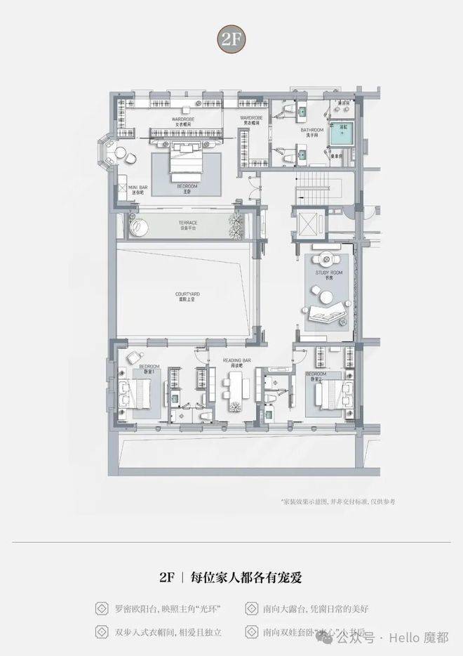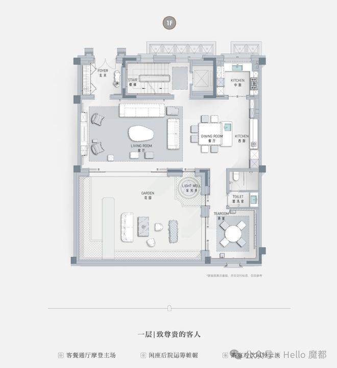 一层长辈套房设计,南向独立小庭院,莳花弄草,晨练太极自在四季