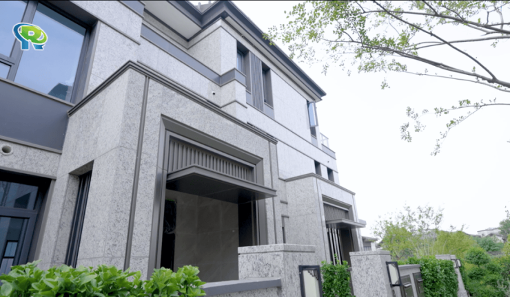 叠加、联排产品外立面采用大面积干挂石材,通过数控切割、精度弯弧、打磨抛光等多重精细工艺,展现优美风貌。洋房底部楼层同样选用天然石材,质感出众。