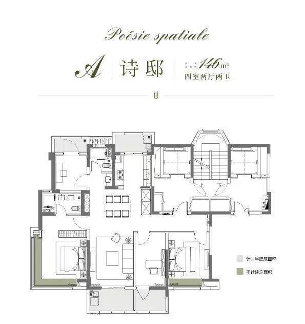 144-146㎡四房,将 “空间革命” 拉满格