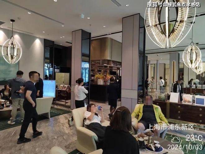 走进去所有圆桌都坐满了人,客群偏年轻,桌子不够用的时候,两路客户拼坐一张桌,沙盘边、样板间的客流量大的有点像过年前的菜市场,就有这么夸张