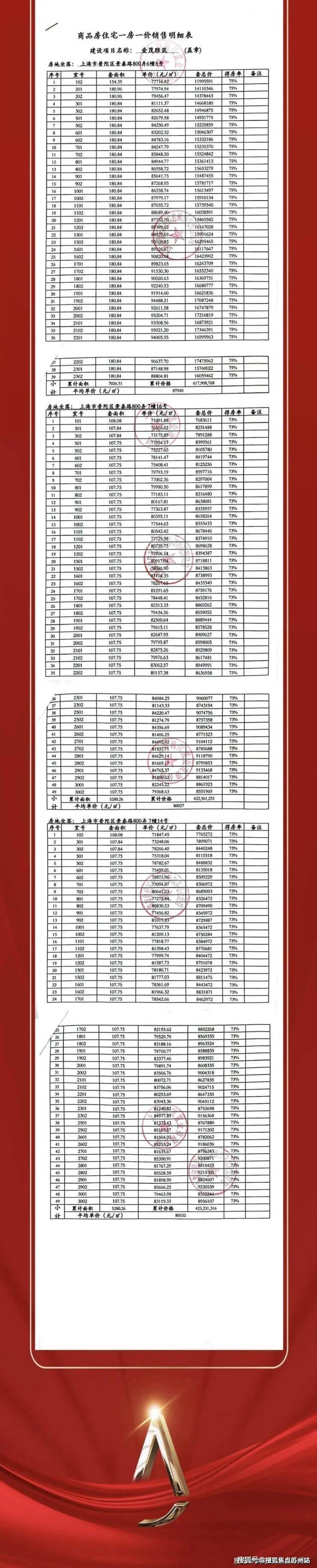 普陀金茂府一房一价表