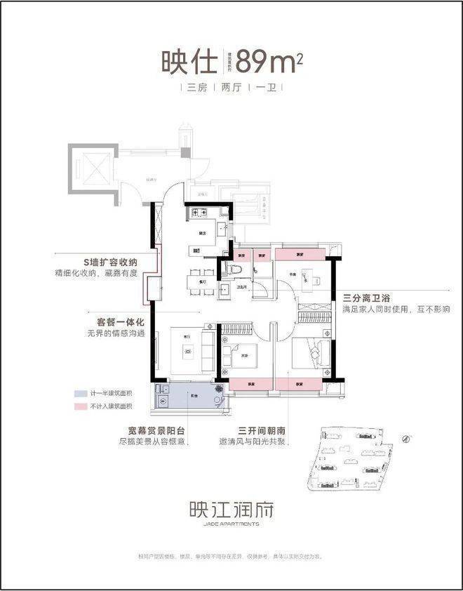 作为华润置地海派3.0作品,映江润府的卷,更在于其硬核的产品力,尤其在户型的设计上,堪称卷到极致。映江润府全盘仅规划89和103两种户型,每个都堪称王炸。