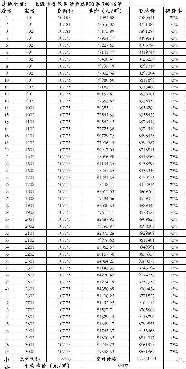 少量建面约107㎡3房在售