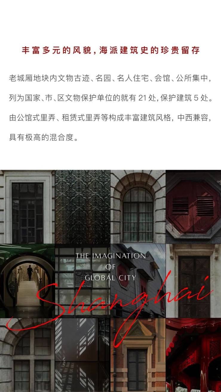 籍由精研老城厢的历史与风华,活化城市深厚人文底蕴,存续街巷肌理与建筑特质,以当代设计审美对海派建筑风貌的匠心修缮,旨在传承城市文脉、打造卓越人居环境,定制理想人居空间,更将探索、兑现城市之心的恢弘愿景,以城市更新下的人文宅院巨著,予城市更新的未来,著立新的不朽。