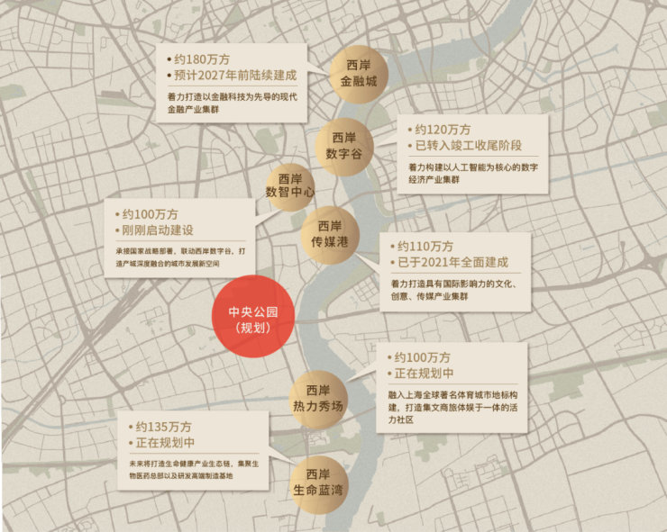 徐汇滨江热度之高,是得益于远瞻世界的战略规划,徐汇滨江打造“世界卓越水岸”,规划有百万方规划组团。徐汇滨江迄今已规划六个百万方组团,聚焦⼀港、⼀⾕、⼀城、⼀场、⼀湾、⼀心的六个百万⽅空间布局(⻄岸⾦融城、⻄岸数字⾕、⻄岸数智中心、⻄岸传媒港、⻄岸热⼒秀场和⻄岸⽣命蓝湾),而第七大组团“中央公园”,完美覆盖海上·清和玺所在上海植物园区域,未来将无界链接城市生态资源,促进徐汇滨江与城区无界融合、兑现徐汇滨江的高质量发展。