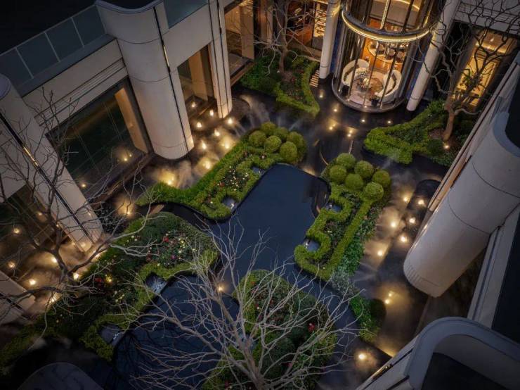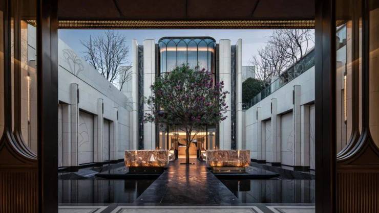8、不仅是金钱上的奢侈,更是时间广度的奢侈。比如,整个下沉式庭院材料选用土耳其进口老虎玉,由匠人耗时60天手工打磨定制,可见海上·清和玺对业主归家仪式感设计的用心与苛求。海派光厅之外的归家迎宾树木更是由设计师辗转多个城市才寻到的、树龄超60年的福木“紫薇”。
