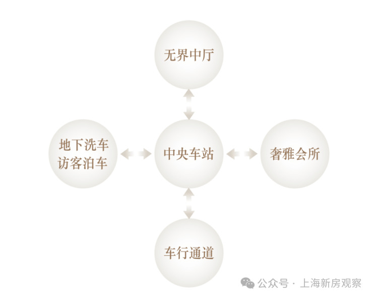 作为地下的驱车通道,本身也是整个空间的枢纽平台,连通海派会所、地下庭院,高效抵达的同时,保证了业主的私密性,营造独一份的尊崇体验。
