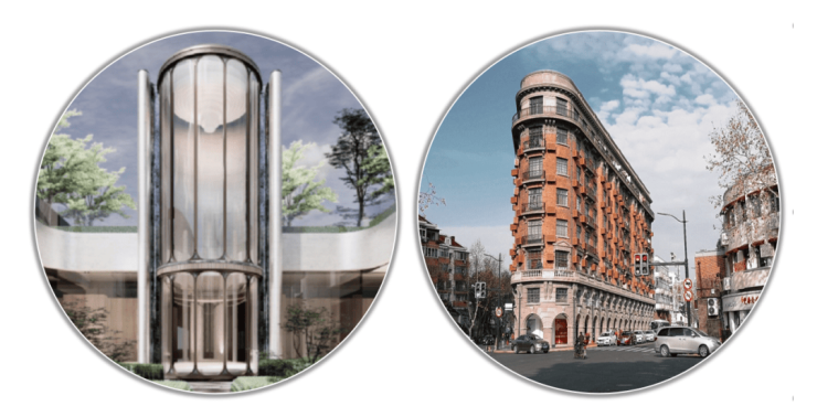 比如,充满武康大楼元素风格的武康印象、参考徐汇公学建筑制式的会所入口、参考西岸美术馆设计的西岸艺廊……