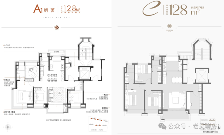 事实上,保利始终在对自己的产品进行迭代升级,我们以建面约128㎡4房为例,下图左为保利虹桥和著约128㎡4房,图右为杨浦滨江保利外滩序BUND45 建面约128㎡4房。