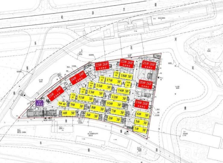 根据设计方案显示,项目拟建2栋24层、5栋26层高层住宅,6栋4层多层住宅及18栋低层住宅,预计将推出高层、叠加、联排等多种产品形态。