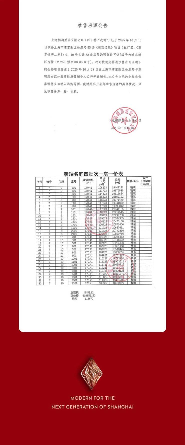 最新公示:翡雲悦府II期四批次已取证,今日开启认购!本次加推7#楼32套建面约170㎡四房,均价约11.36万/㎡!