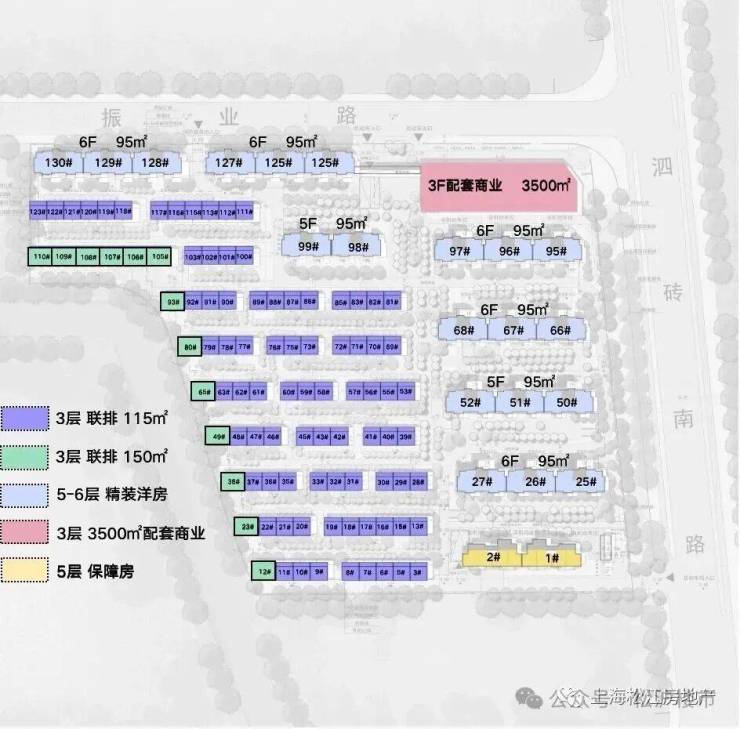 产品类型洋房总户数230套总占地面积约34042.3㎡总建筑面积约37446.53 ㎡容积率1.1绿地率约35%物业类型70年产权住宅梯户比一梯两户层高5-6层交付标准部分精装、部分毛坯得房率79%开发商上海中建大椿房地产开发有限公司层高2.95米物业费4.85元/平/月物业公司绿城物业拿地时间2022年9月交房时间2025年4月在售房源96㎡洋房 三房两厅两卫(精装、一楼部分毛坯)81㎡ 2房2厅2卫(1楼毛坯)