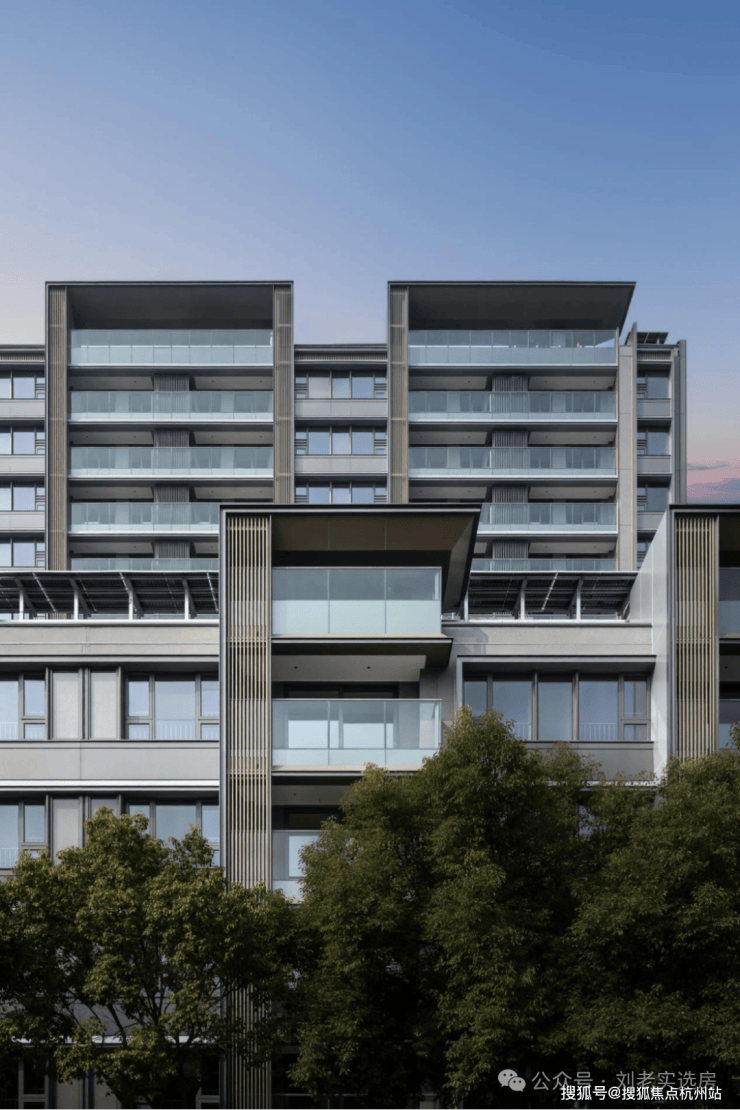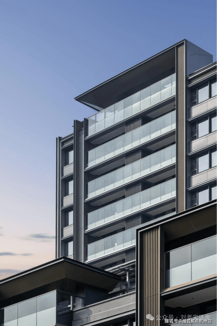 建筑立面的呈现,是项目对“历久弥新”承诺的直观回答。设计溯源新加坡NassimRoad等国际豪宅的现代主义语汇,以大面玻璃幕墙、金属格栅与高品质铝板,构成富有节奏感的三重奏。主色调“学府灰”沉稳内敛,搭配精工镶嵌的玫瑰金色金属线条,在阳光下折射出如珠宝般的细腻光泽。这种对材质拼接精度、立面平整度与细节收口的严苛控制,确保了建筑在时光中依然能保持优雅的轮廓与质感。