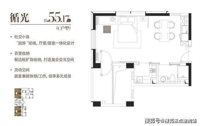 A|循光|建面约55.17m²|一室一厅一厨一卫