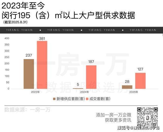 一房一万数据显示,2023年至今(截至2025.8.31),闵行195(含)㎡以上大户型仅供应了270套,仅占闵行总供应(22104套)的1.2%。