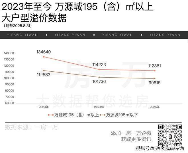就拿同区域同样是二手次新大盘标杆的万源城来说,195(含)㎡以上大户型的成交价格,始终要比更小面积产品高出一大截。
