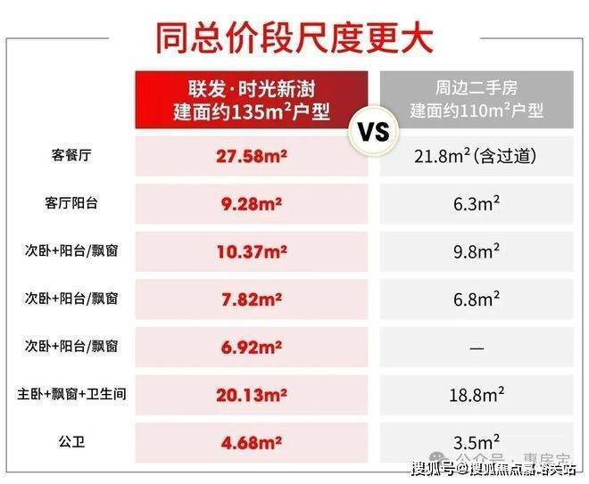 从目前的价格爆料来看,建面约135m²户型的预估总价与周边二手次新107-108m²的挂牌价相近,但实际居住感受和空间,截然不同!