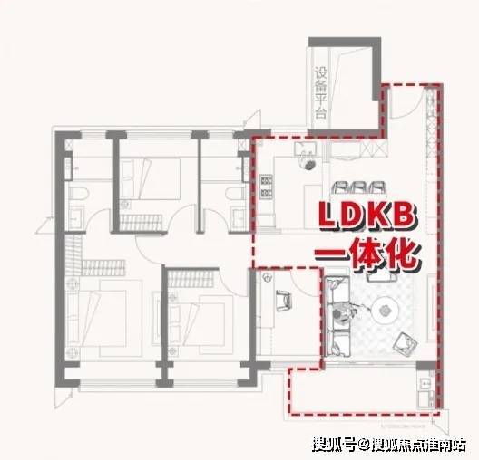 LDKB一体化的设计恰到好处的解决了面积不够的问题。厨房、餐厅、客厅三大空间联通,不仅通透感十足,还构建了一个利用率超高的家庭核心区,在这样高度开放的空间里,即使互不交流,也能保持交流和关注!