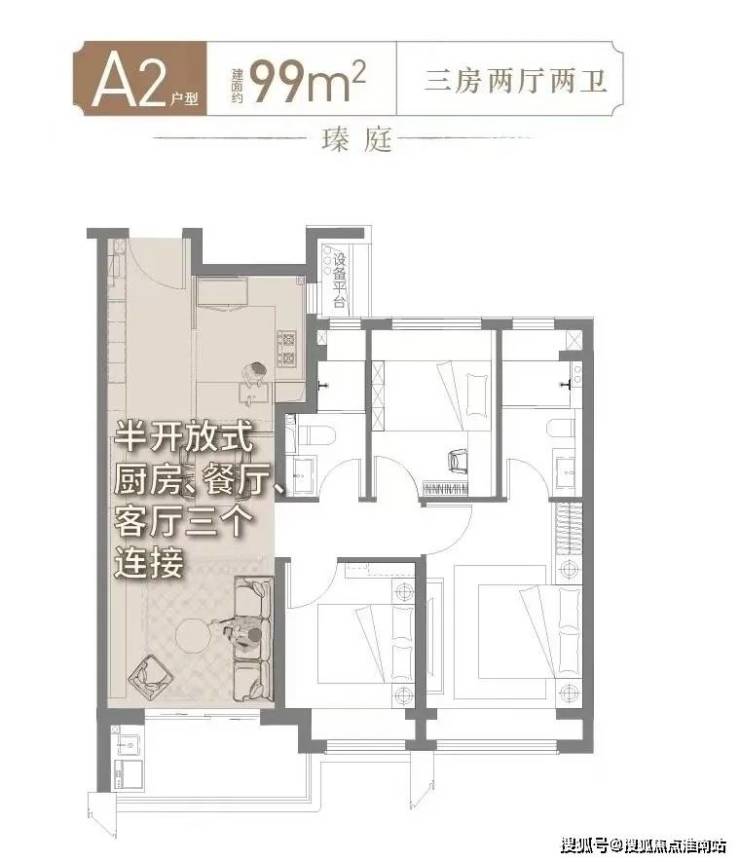 对于99㎡的居住空间,不多占、不多用面积就是最大的利好。