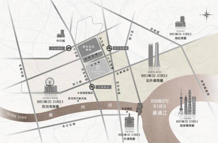 交通配套:周边4号线、10号线双轨环绕。靠近北横通道和外滩隧道,交通便捷。