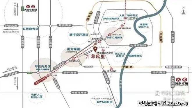 汇萃玖里,坐落闵行与徐汇主城区-交界黄金中环地带!中环上中西路下匝口,虹梅南路与益梅路交汇处、东至虹梅南路(中环高架)南至北潮港、北至益梅路!