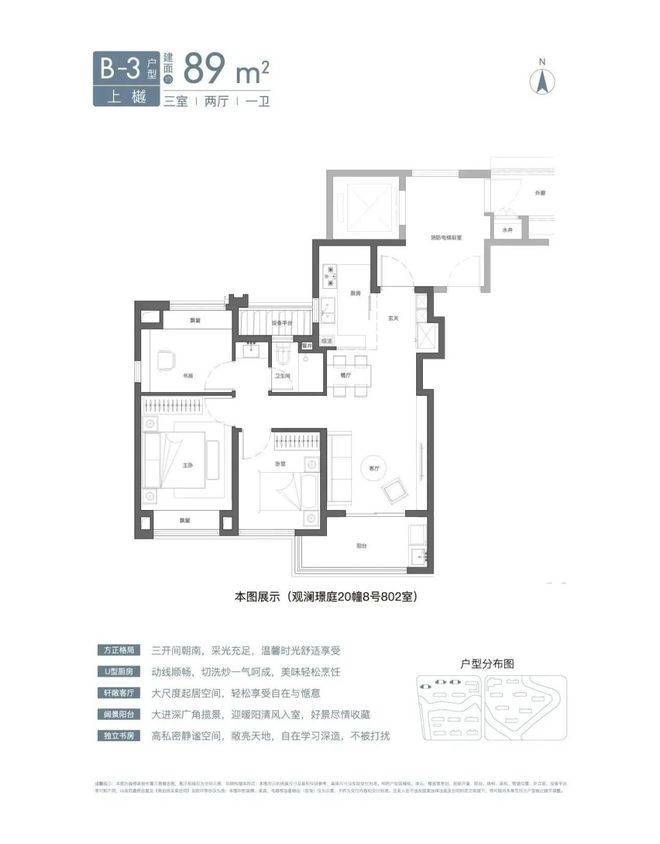 在对百平左右的三房,功能性要求越来越高的今天,国贸虹桥璟上约105㎡户型做到了每一平空间的合理利用,实现了尺度感与功能性兼备,出众产品更出圈,当然备受欢迎。