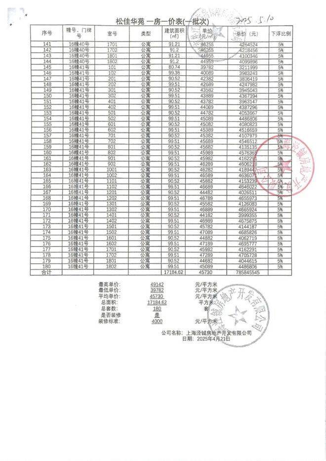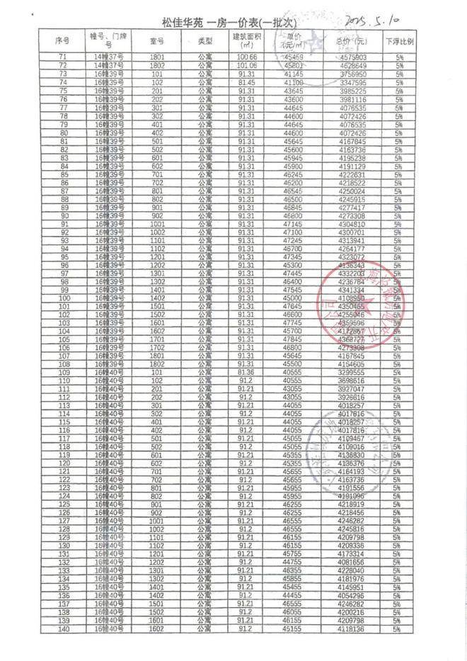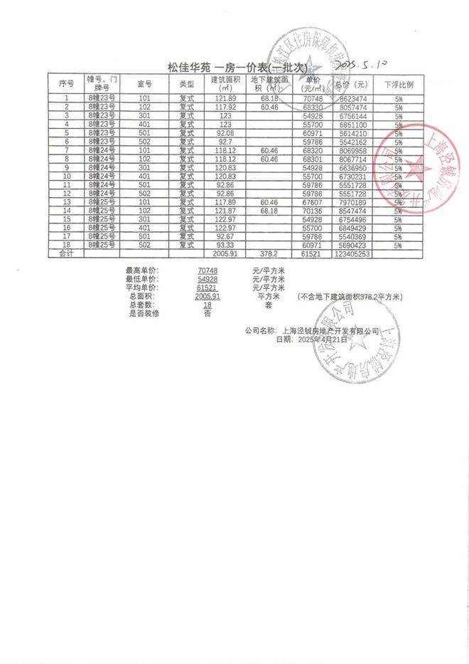 一房一价表