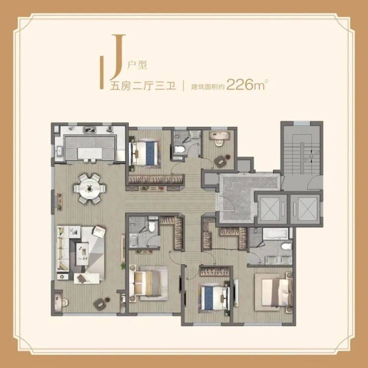 宝华紫薇花园的226㎡大户型,更是直接升级,一线豪宅不过如此: