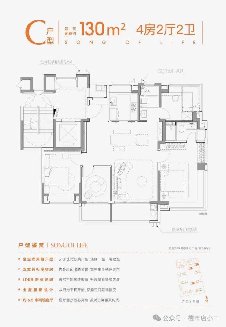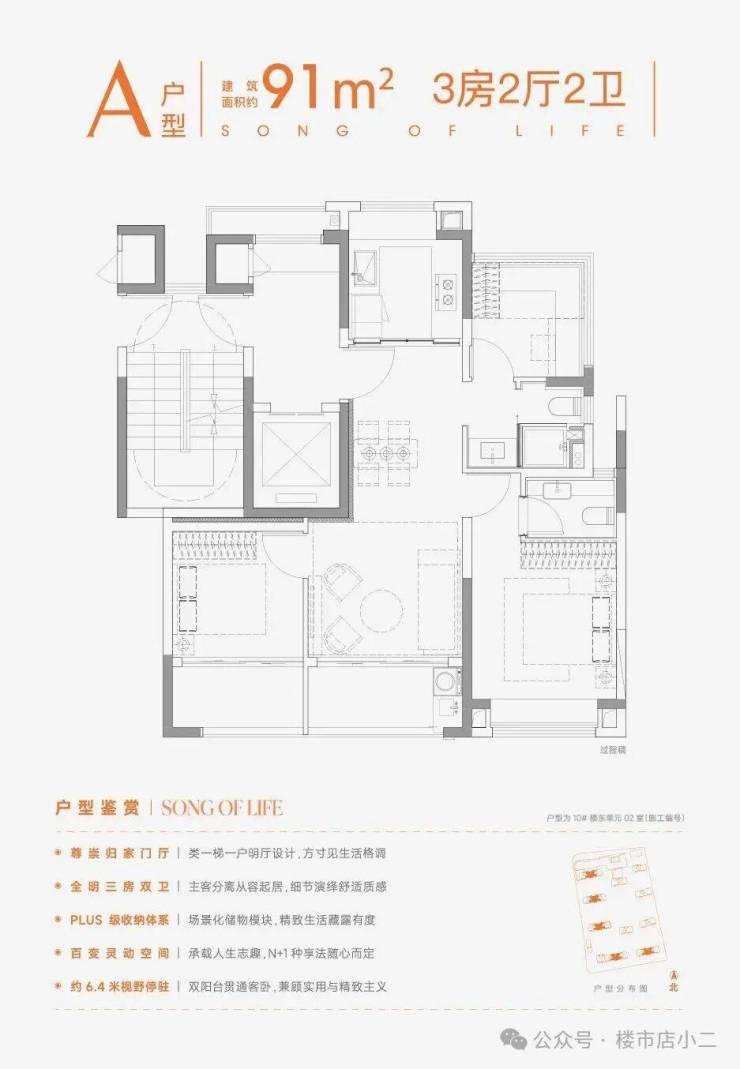 保利虹桥和颂三期直击板块改善户型面积断层与品质短板痛点,首先面积段从原来70㎡起步,升级为更贴合改善需求的约91-139㎡3-4房