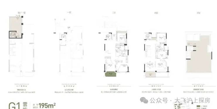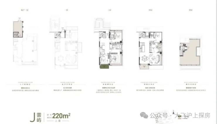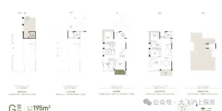 目前,在售一期5套建面约175-220m²叠墅(四层)